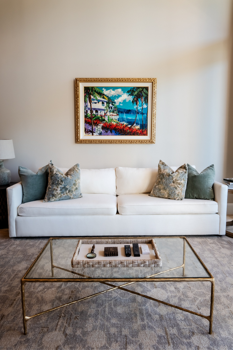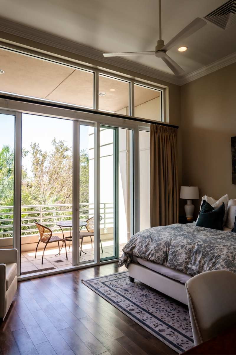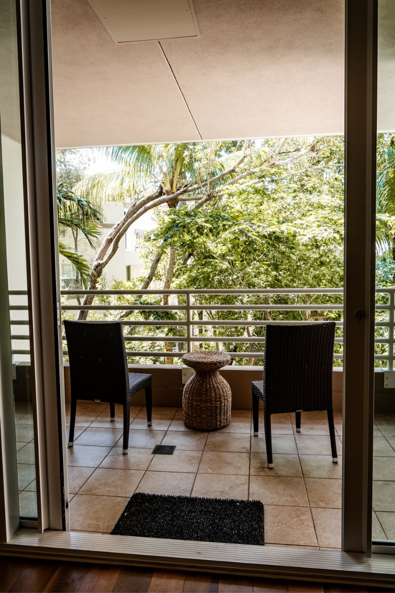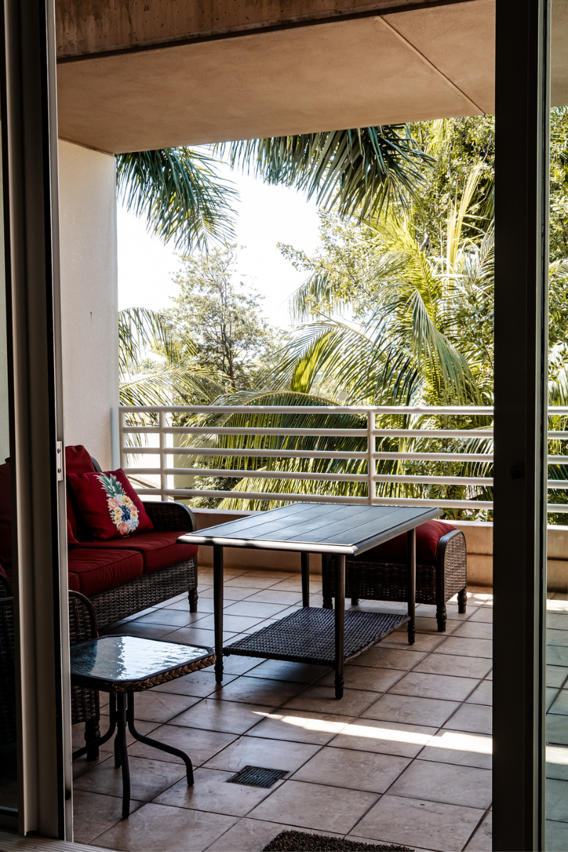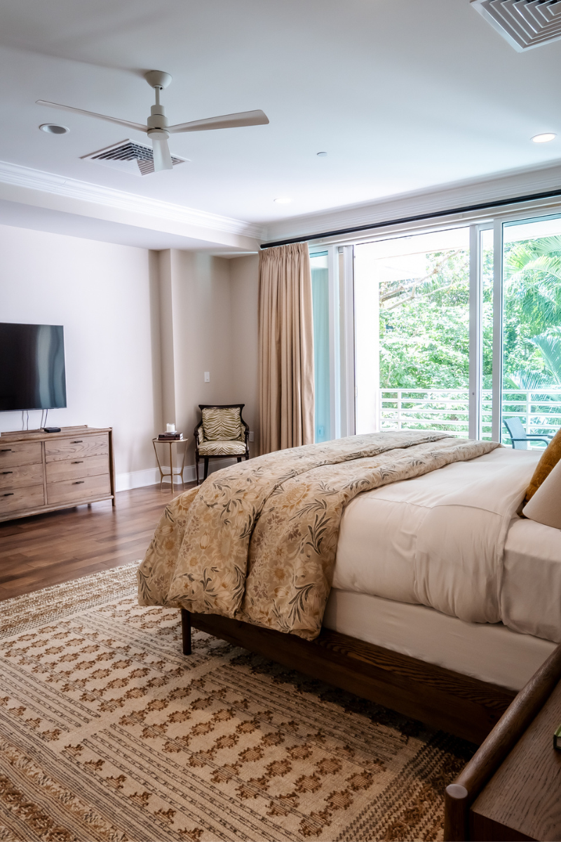 With room to sleep up to 8 guests, the residence includes two king bedrooms, a twin bedroom, and a queen sleeper sofa, making it ideal for families, couples traveling together, or extended island getaways. Each bedroom features its own en suite bathroom and access to private balconies that overlook lush tropical gardens and city views.