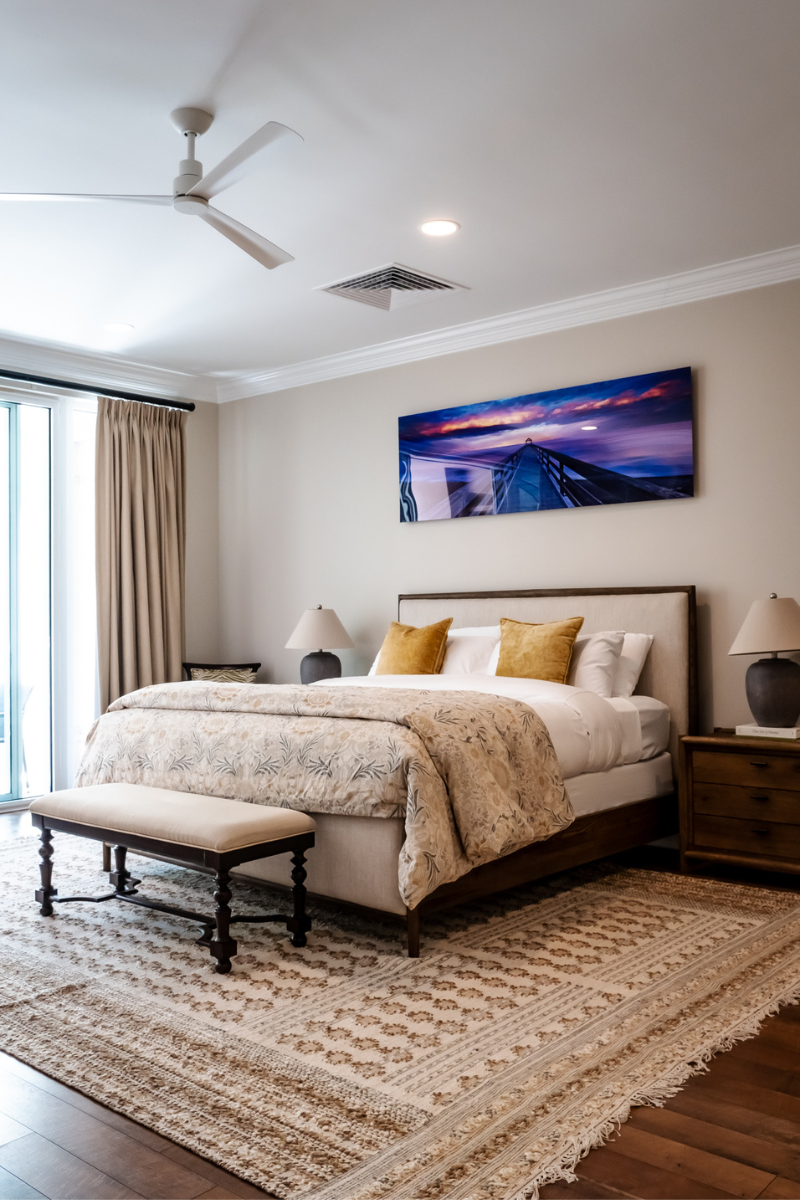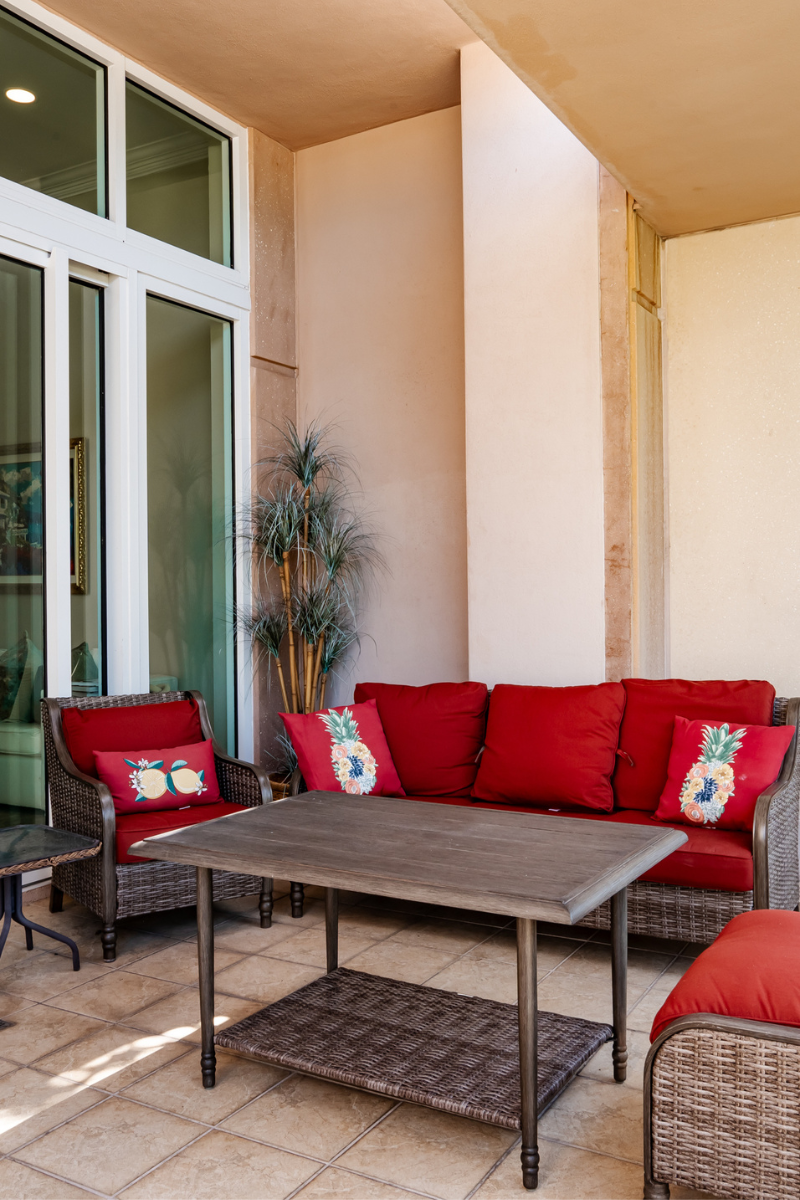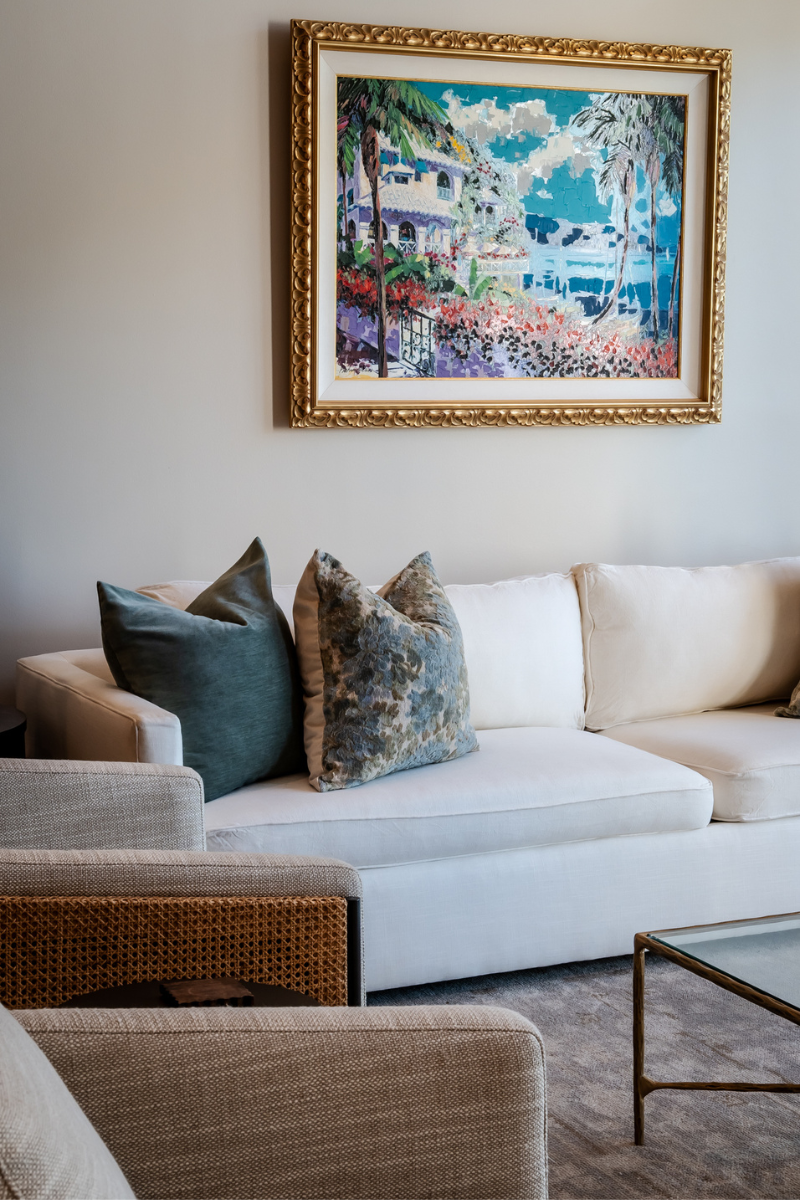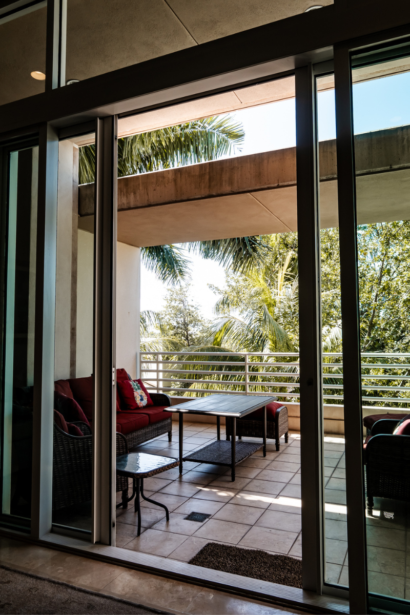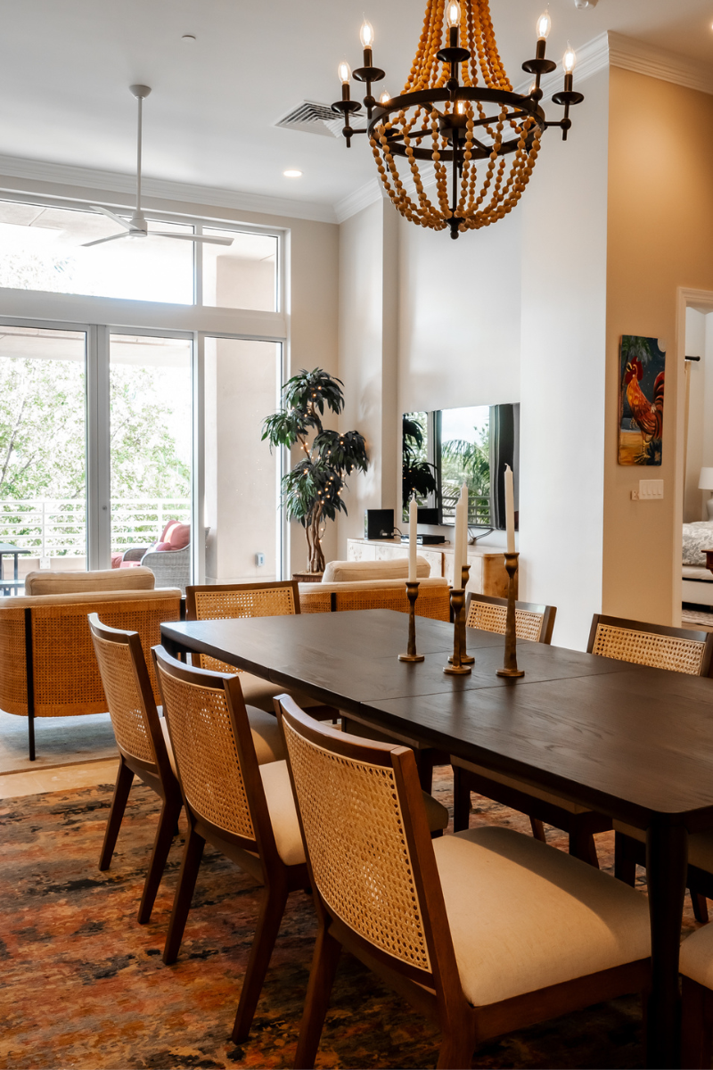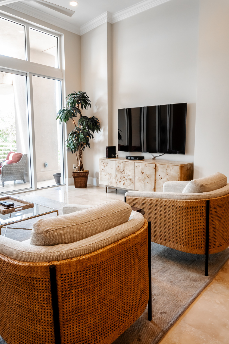 With room to sleep up to 8 guests, the residence includes two king bedrooms, a twin bedroom, and a queen sleeper sofa, making it ideal for families, couples traveling together, or extended island getaways. Each bedroom features its own en suite bathroom and access to private balconies that overlook lush tropical gardens and city views.