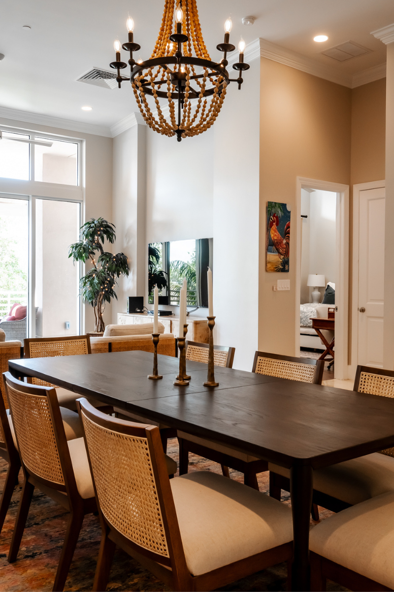 Inside, soaring ceilings and sun-filled living spaces set the tone for effortless relaxation. The chef’s kitchen is equipped with Viking stainless steel appliances, granite countertops, a gas stove, and custom cabinetry—offering everything you need for casual meals or elevated entertaining. Multiple indoor and outdoor living areas create a seamless flow between comfort and connection, whether you’re hosting friends or simply enjoying a quiet evening under the stars.